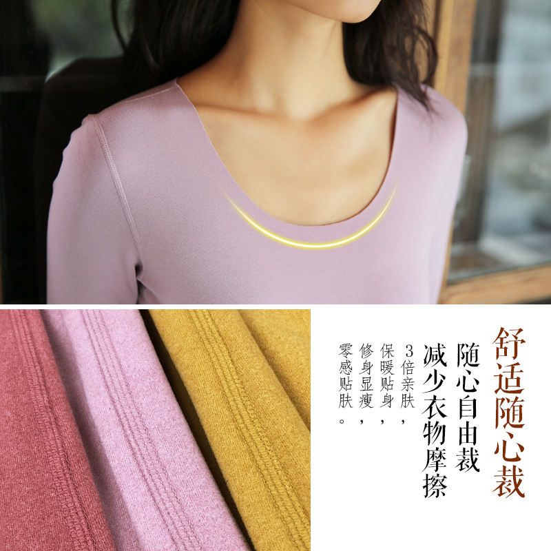 De velvet fever seamless hair heating women padded plus velvet crewneck slim one-piece jacket bottoming shirt long sleeve autumn clothes