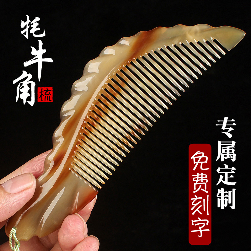 Yak Horn Comb Pure Home Massage Comb Anti natural custom lettering birthday Mother's Day gift hair comb-Taobao