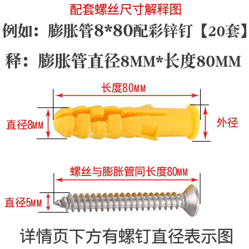Expansion tube 6*30-with color zinc nails (38 sets) Expansion tube 6*40-with color zinc nails(30 sets) Expansion tube 6*60-with color zinc nails (20 sets) Expansion tube 6*8