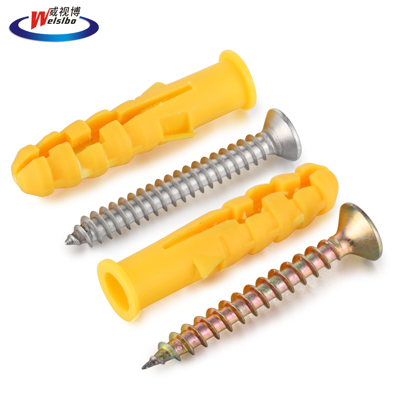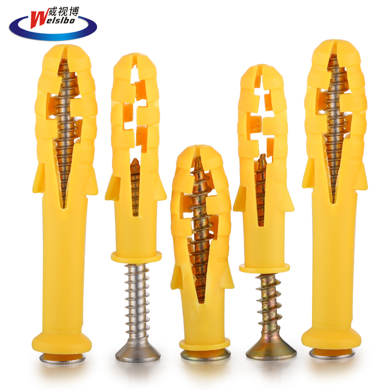 Expansion screw Small yellow fish plastic expansion tube 6mm rubber plug bolt 10mm rubber plug 8mm self-tapping screw set