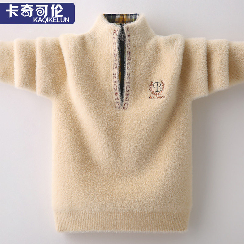 Boy sweater winter thick with high neckline ferret child plus suede thickened CUHK Warm Needles Weaselwear Boy Tide