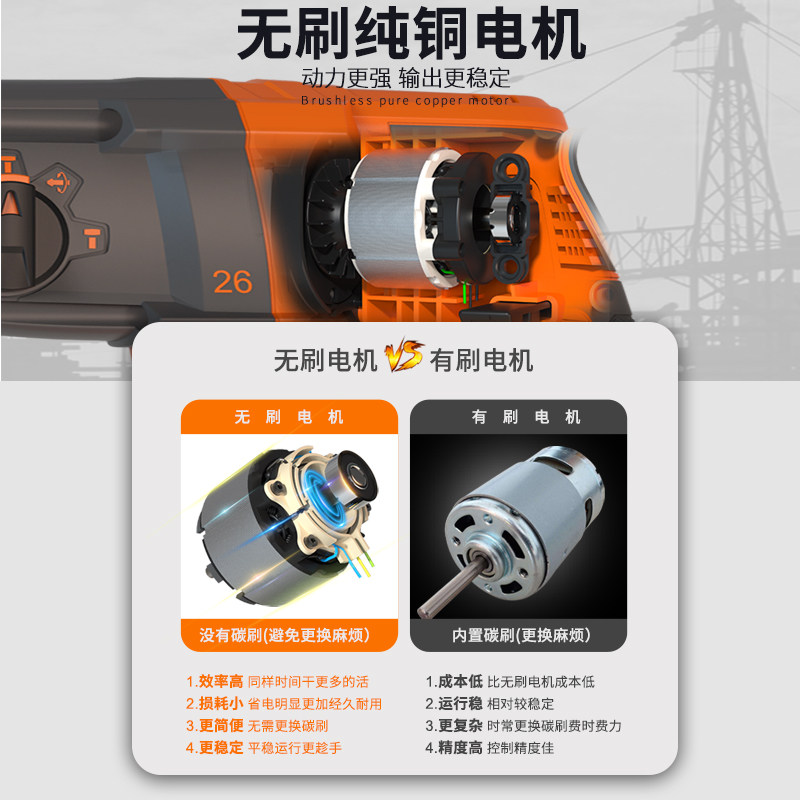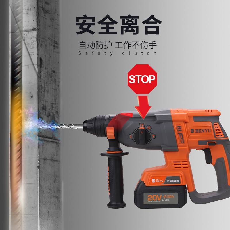 Benyu high-power brushless electric hammer drill electric pick industrial-grade concrete impact drill household multi-functional rechargeable electric drill