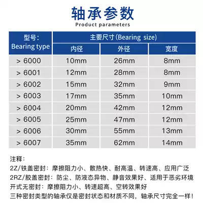 SKF 6000-2Z (iron cover seal)SKF 6000-2RSH(rubber cover seal)SKF 6001-2Z (iron cover seal)SKF 600