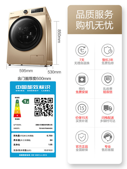 Little swan washing machine official automatic intelligent 10KG household drum elution one TG100VT096WDG