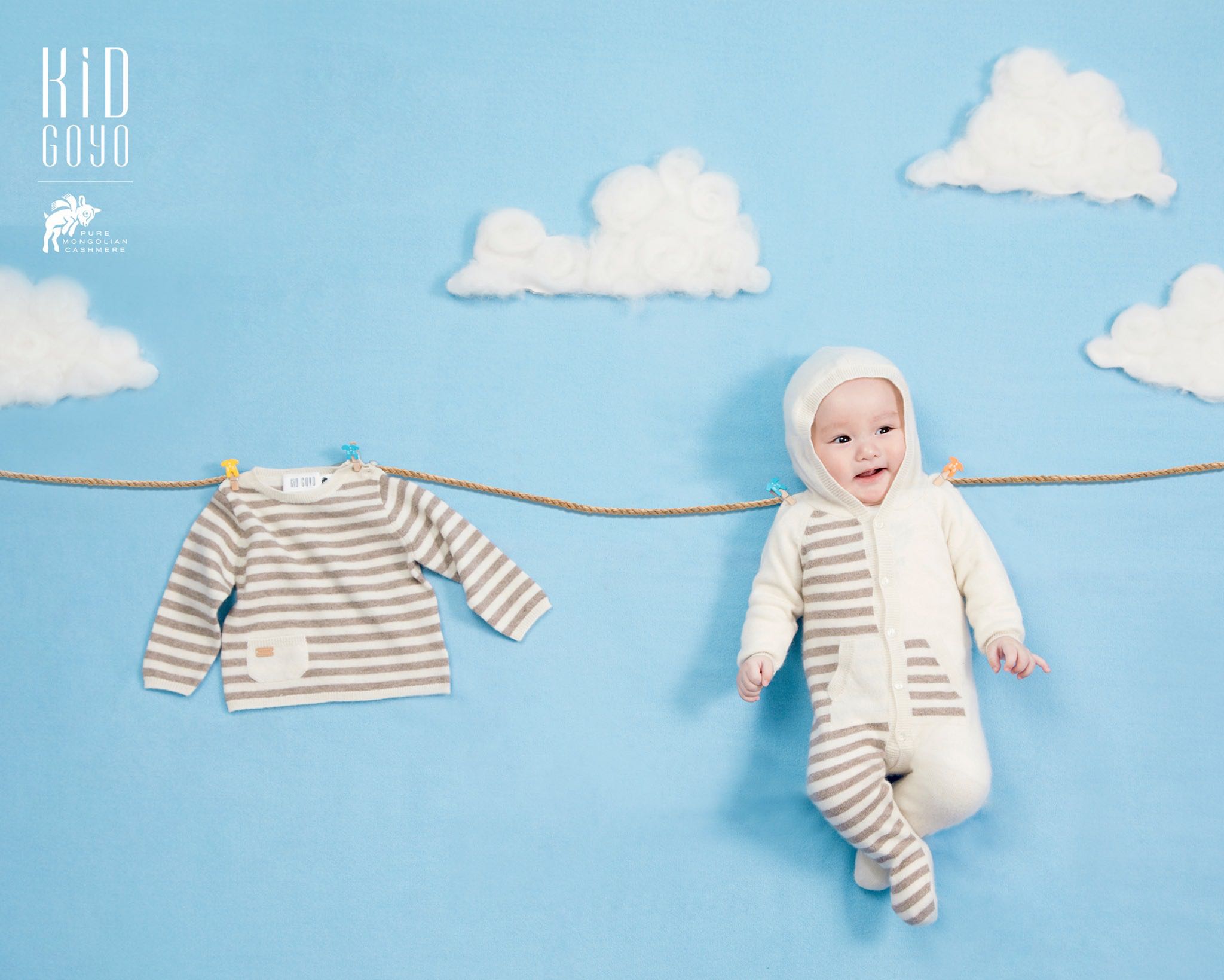 (Spot) Mongolian Cashmere GOBI Kids Cashmere Shirt Soft Skin Sticky MUJI Wind Newborn Striped Top