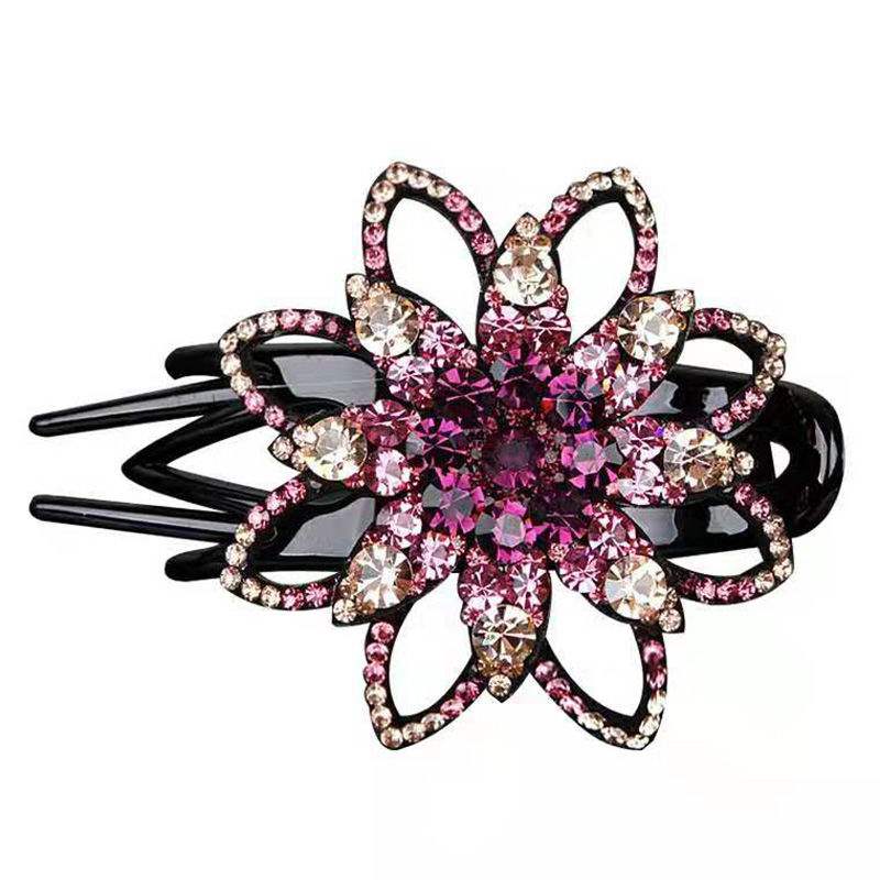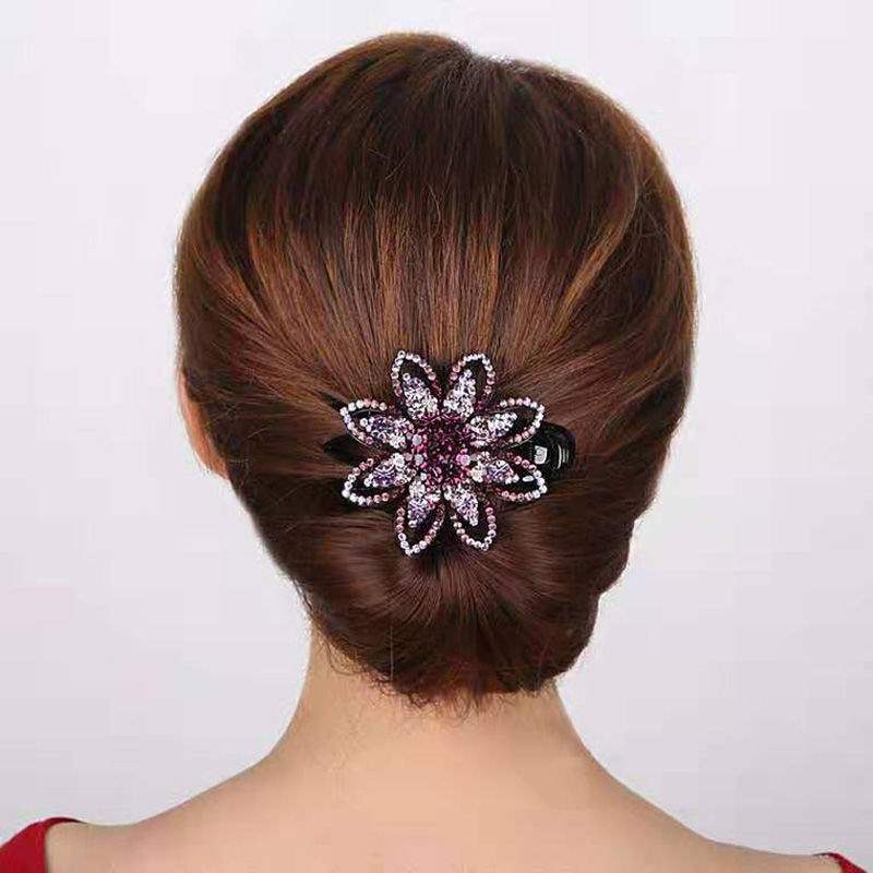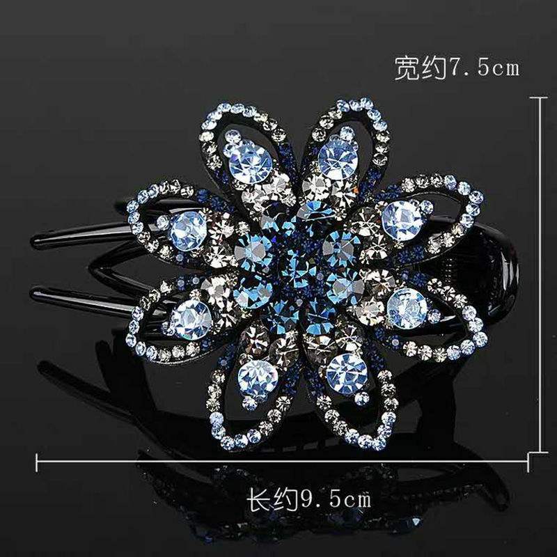 Korean-style hairpin three-tooth clip duckbill clip headgear Korean rhinestone elegant flower plate hairpin back head grab clip female