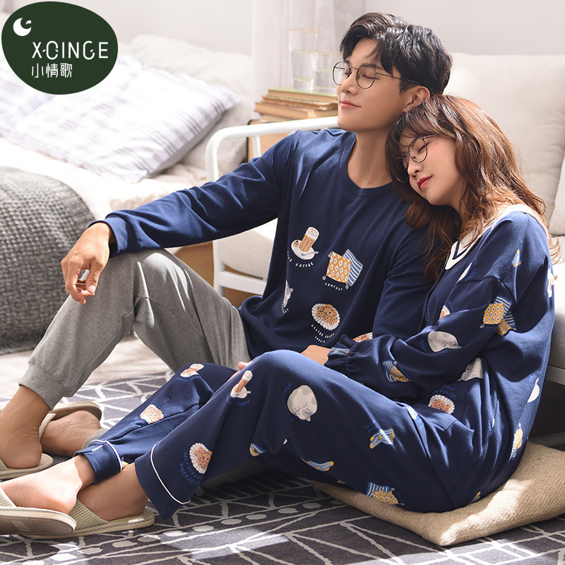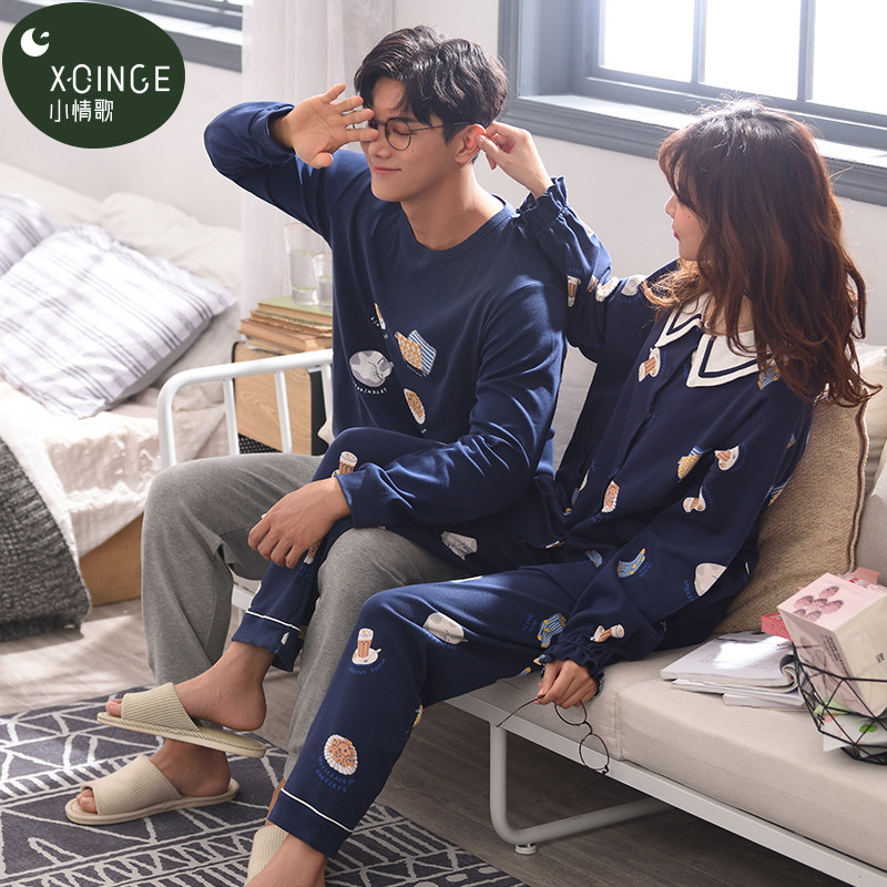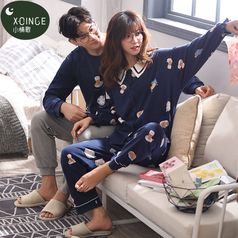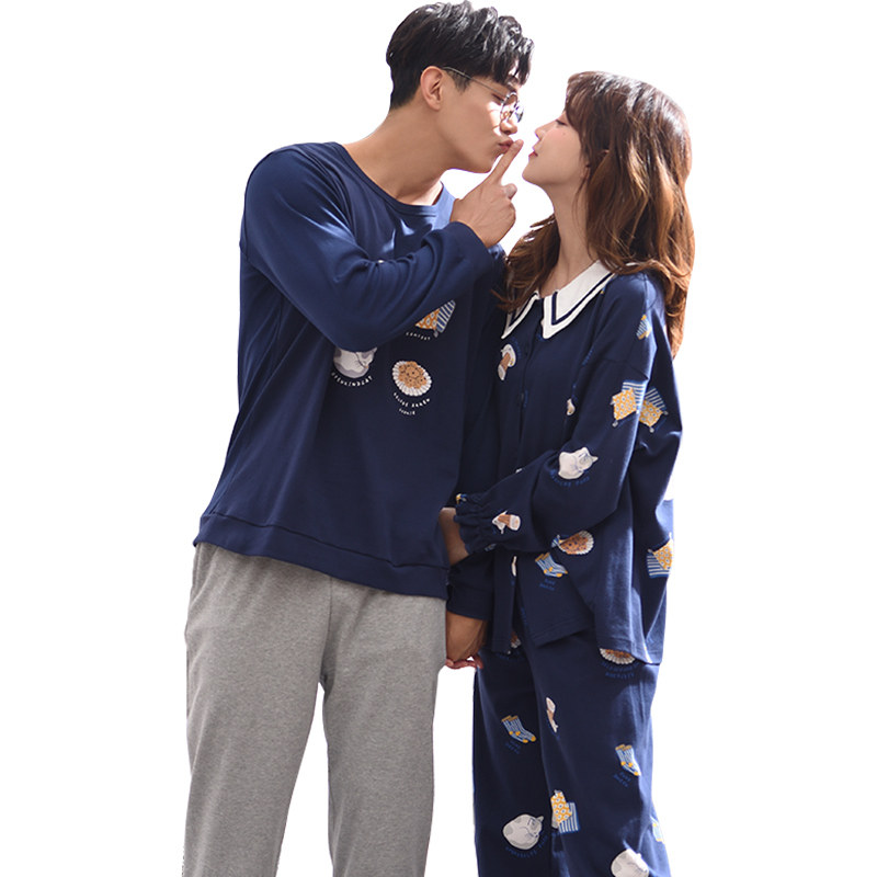 Couple Sleepwear Spring Autumn style Long sleeves pure cotton men's autumn winter cardiovert sweatshirt cute stay-at-home woman outwear suit