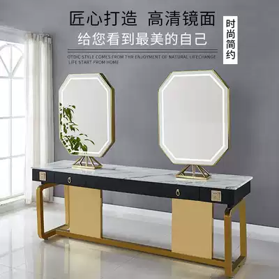 Simple shop mirror table with lamp double-sided hairdressing mirror table hair salon special hair cutting mirror desktop single-sided ironing table