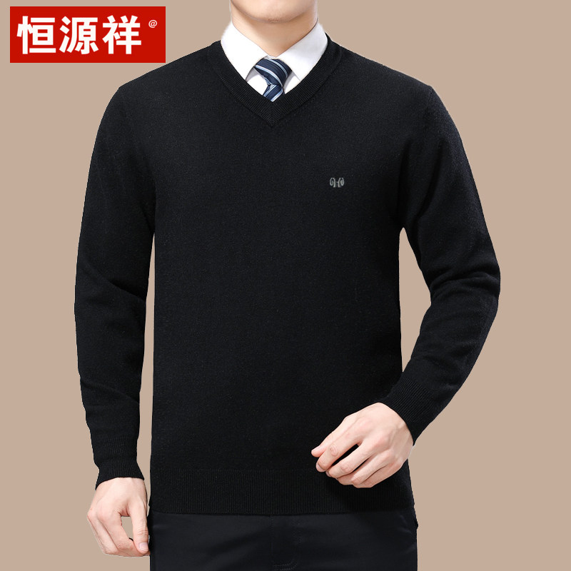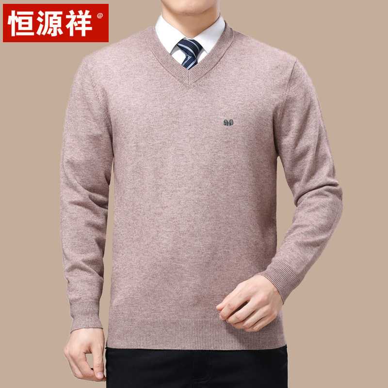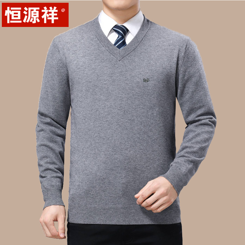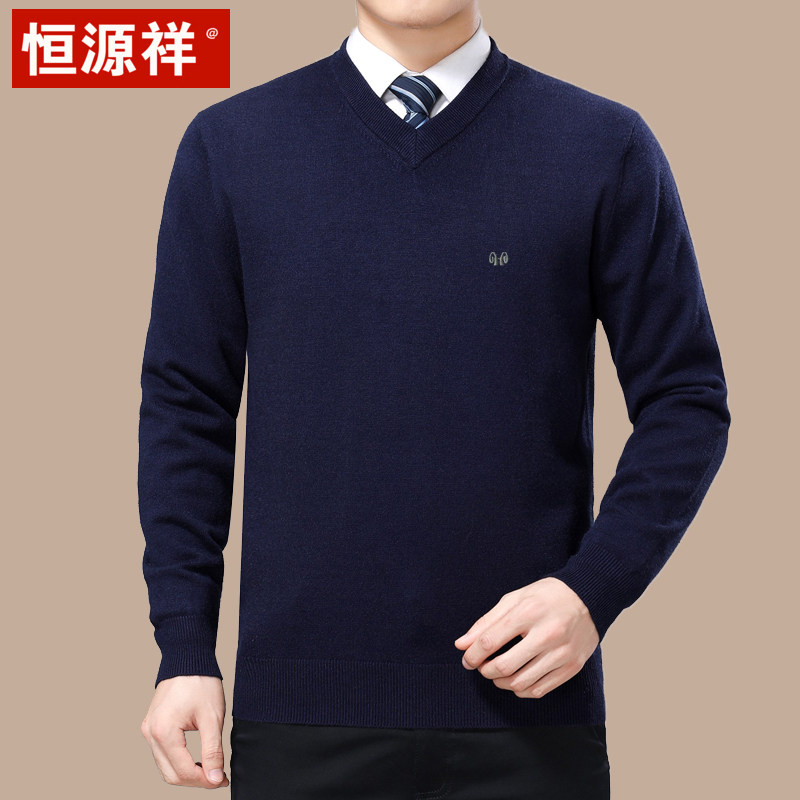 Hengyuan Xiang V collar thickened warm winter V collar with wool-knitted sweater in old age Dad clothes for men's sweater