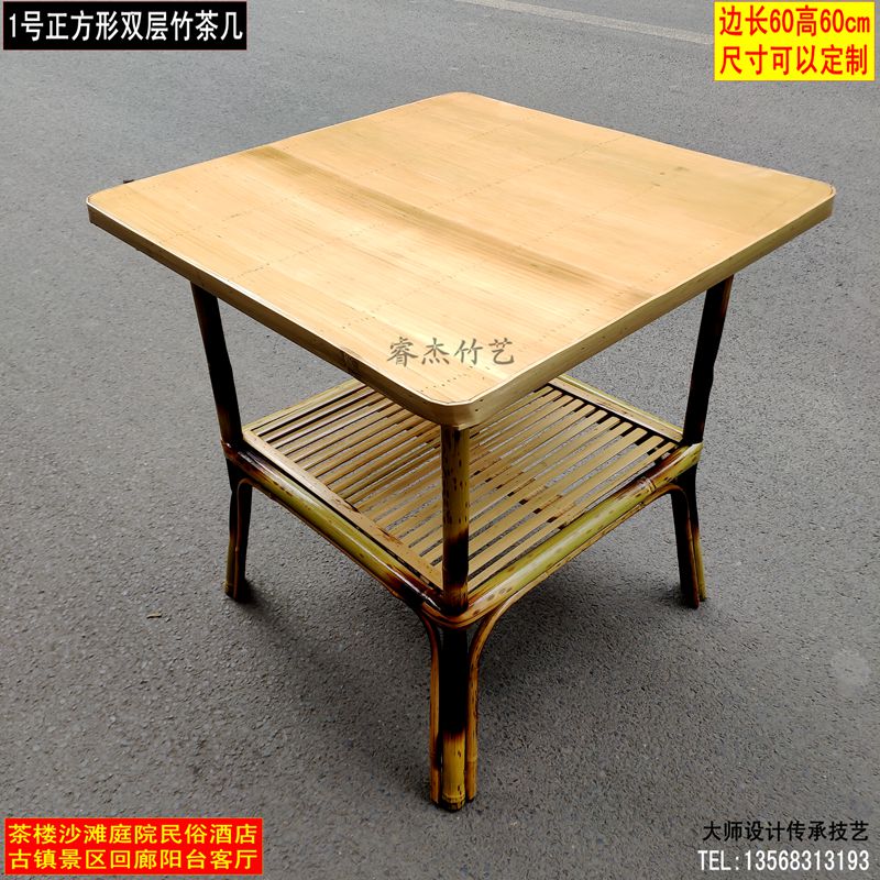 Chinese Fields Garden Whole Dress Square Bamboo Tea Table Home Balcony Patio Courtyard Double Round Bamboo Tea Table Zen