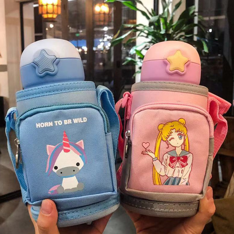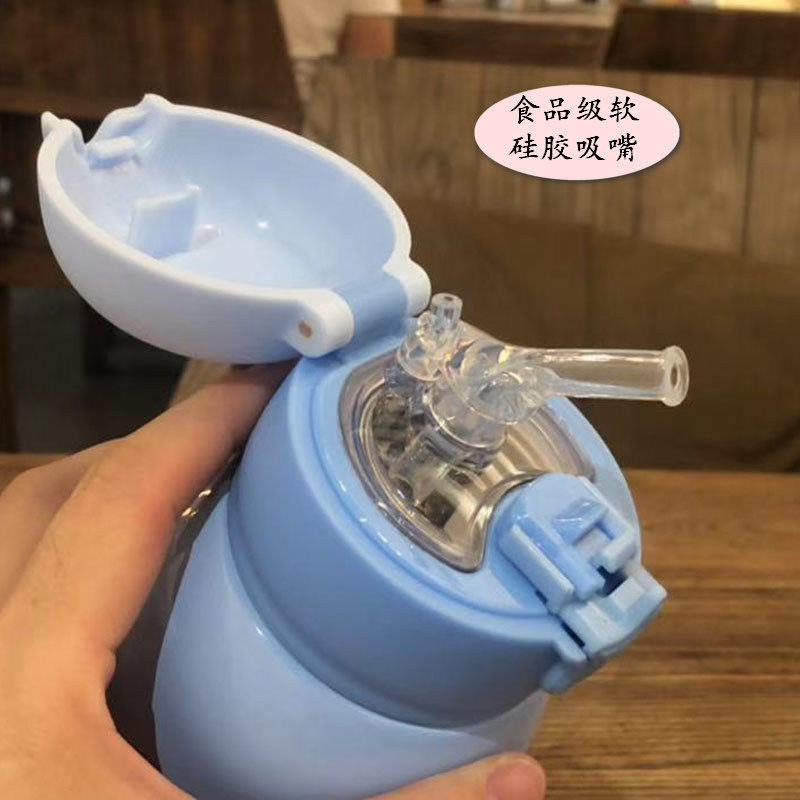 Children's insulated cup with straw cup double cover water glass student kindergarten anti-fall large capacity for portable kettle-Taobao
