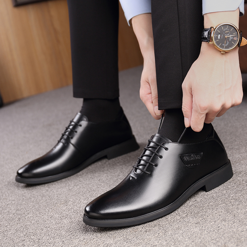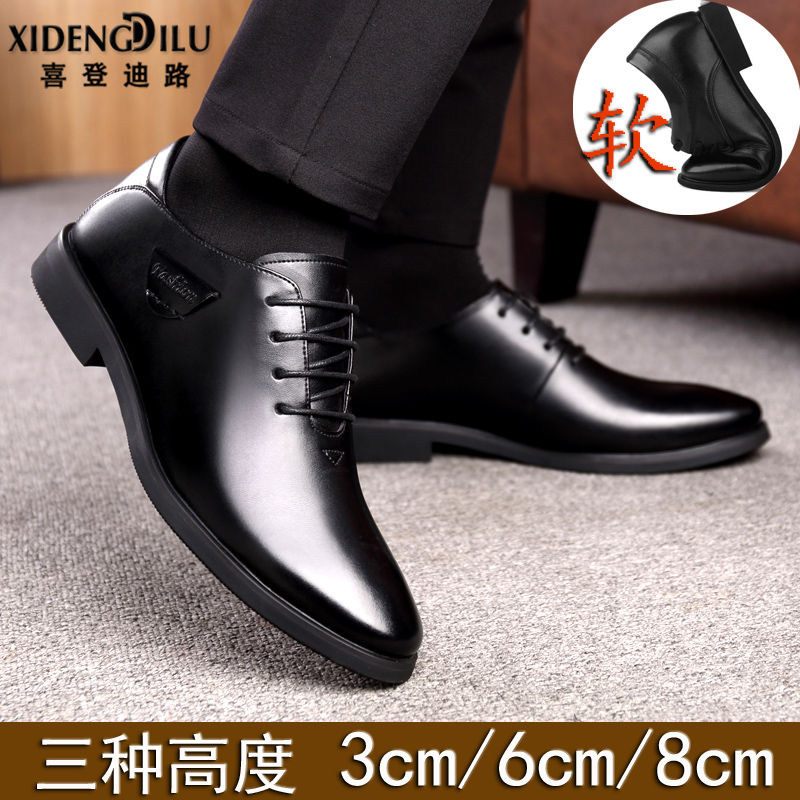 Leather men's leather shoes with a height of 8cm business formal dress Korean version of the British casual youth lace pointed middle-aged best man