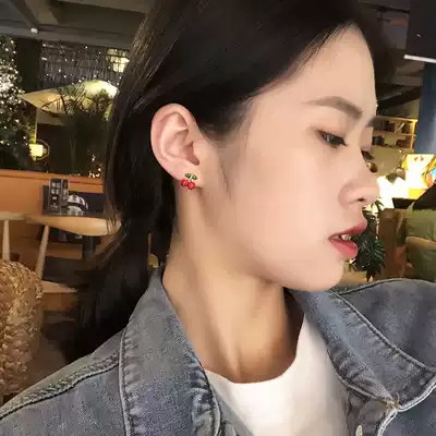 Korean temperament red fruit stud earrings personality fresh cherry strawberry small earrings festive design feel earrings female