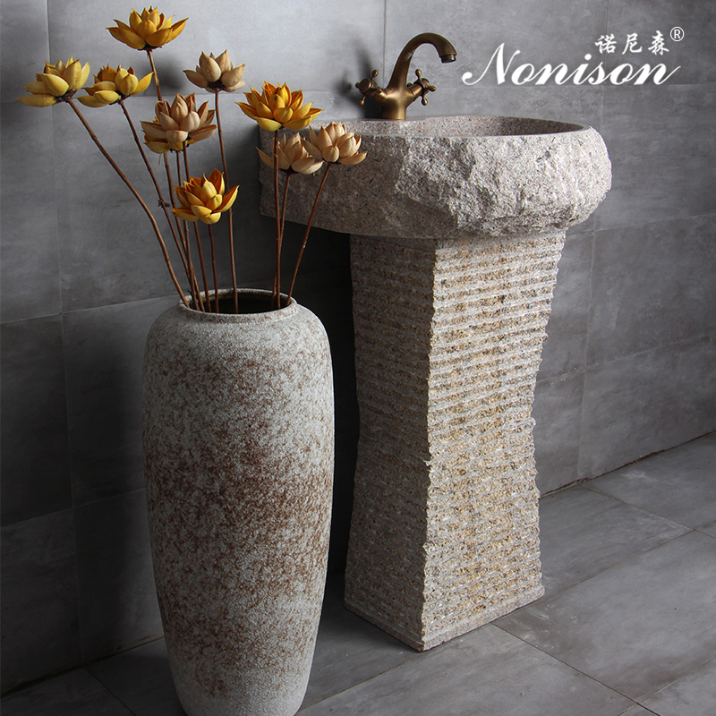 Stone column basin Powder room column washbasin One-piece floor-standing stone washbasin Outdoor outdoor washbasin