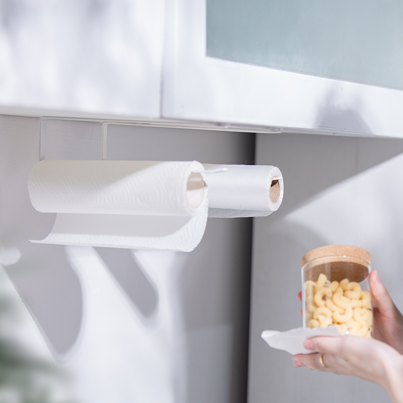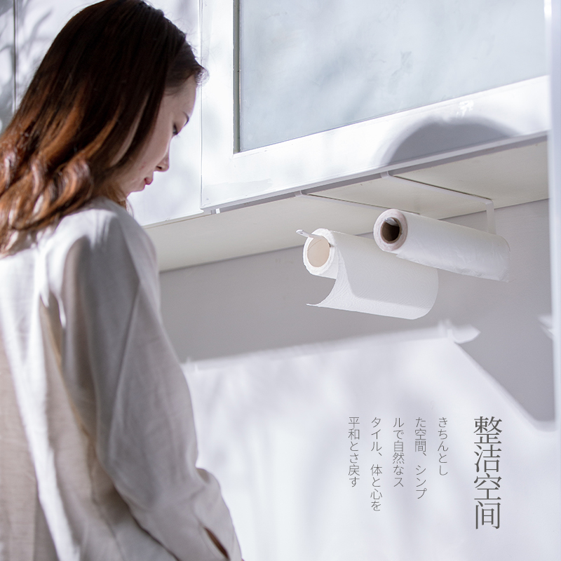Kitchen tissue rack non-punching multifunctional creative tissue box upside down plastic wrap towel whole cabinet hanging cabinet under hanging rack