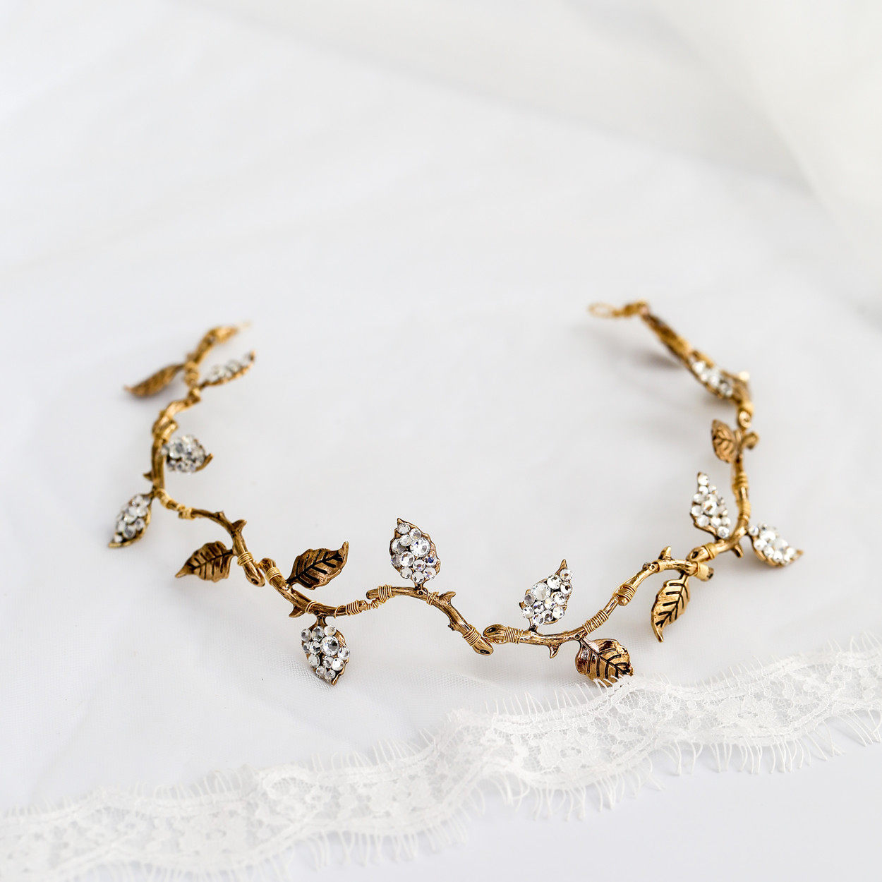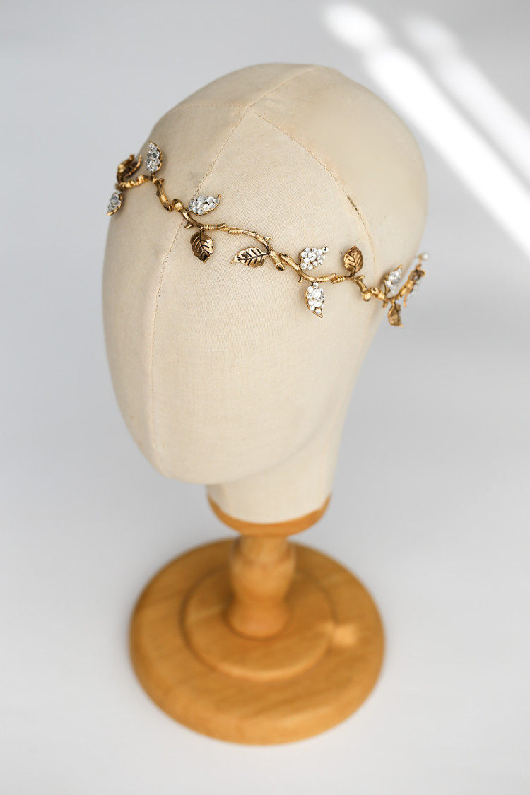 Bride Hair Stirrup Retro Rose Tingle Leaf Water Drill Soft Hair with Old Color Brief Rose Branches Hair Accessories Hair Accessories