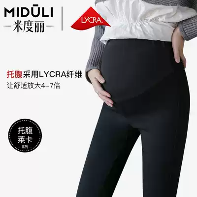 Pregnant women's pants, pants, outer wear, inner pants, fashion spring and autumn models, imitation denim autumn pants, trendy mom, black small feet, autumn clothes