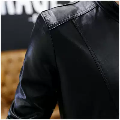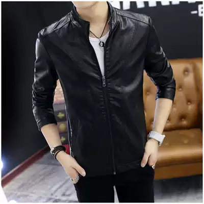 Leather men's tide leather autumn and winter thin new Korean version of the trend slim Joker men plus velvet leather jacket