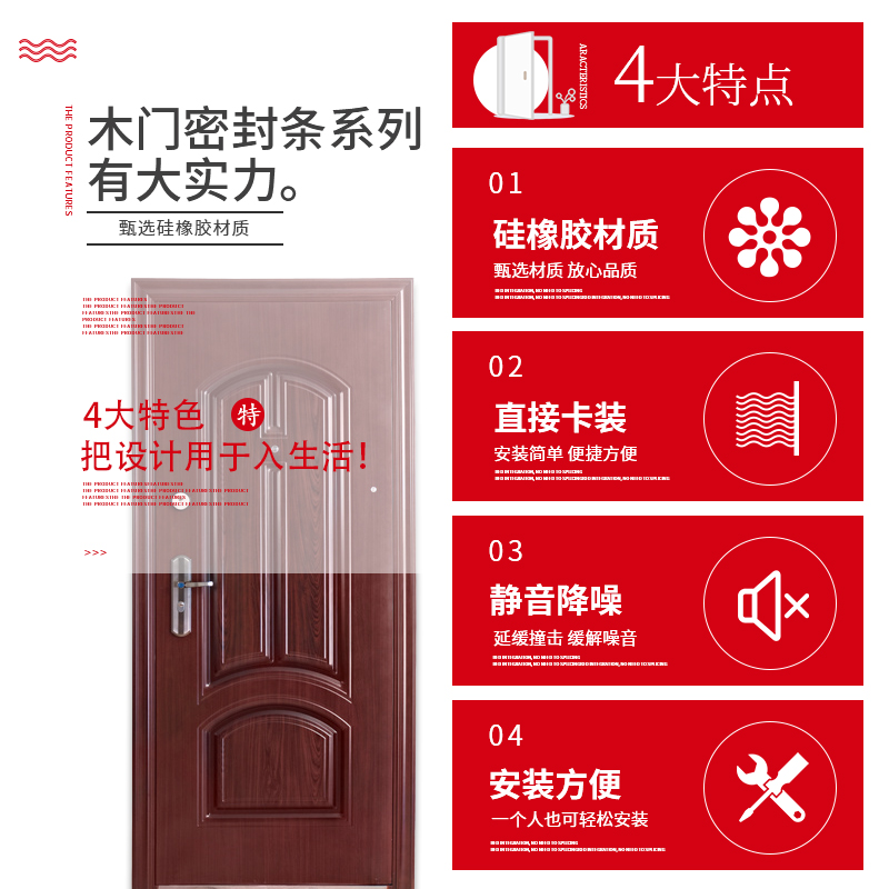 Wooden door sealing strip Wooden door card strip Door anti-collision strip Noise reduction sound insulation strip Wooden door insert strip Dust and wind insulation strip