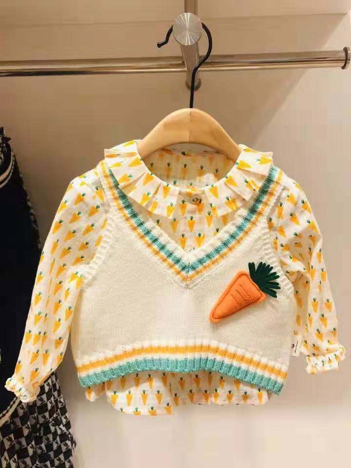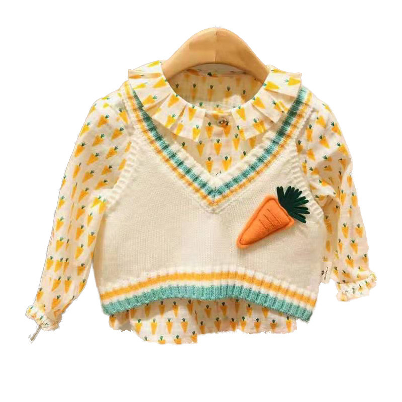 peace mara children's clothing 22 spring and autumn girls baby long-sleeved shirt top bottoming vest sweater vest tide
