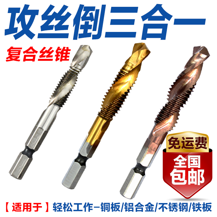 Titanium-plated composite screw tapping hole chamfering knife One-piece cobalt-containing spiral machine screw tapping white steel three-in-one drill 3-12