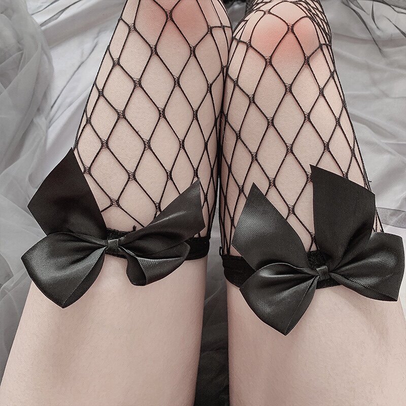 Lost to the bow sexy stovepipe fishnet socks huge sexy thigh fishnet socks lace sexy temptation black stockings