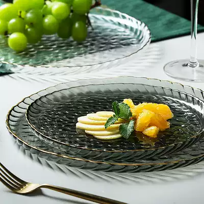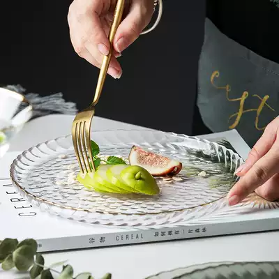 Yayi show ins Nordic gold-edged glass plate creative home fruit salad dessert cake steak dinner plate