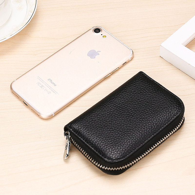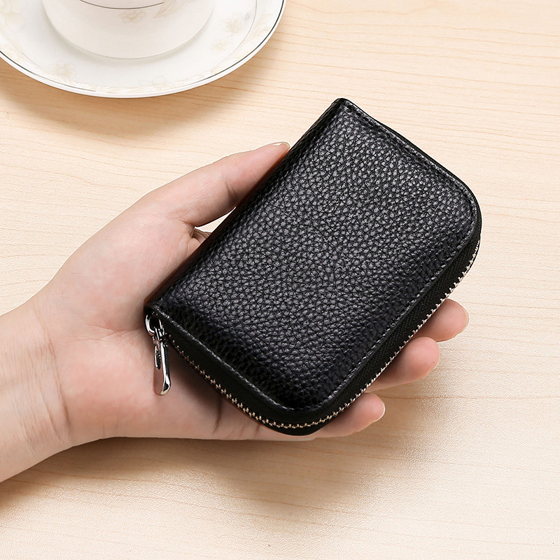 Card bag men leather multi-card slot ID card bag large capacity card holder wallet integrated compact women's card sleeve anti-demagnetization
