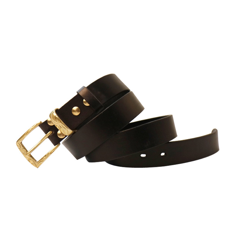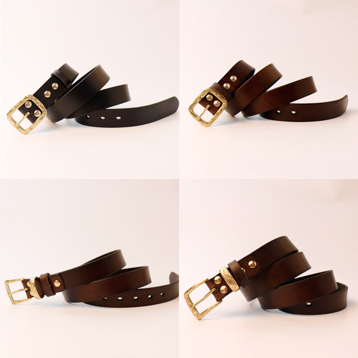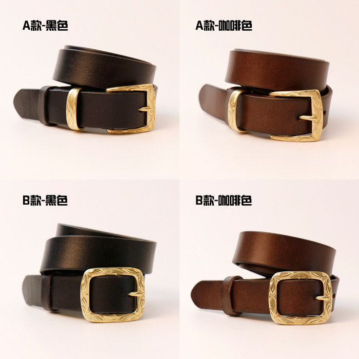 Casual pants men's top layer yellow leather belt pin buckle denim retro fashion belt hand-engraved copper buckle