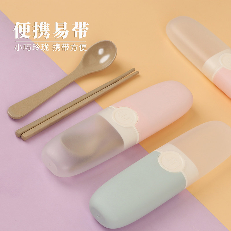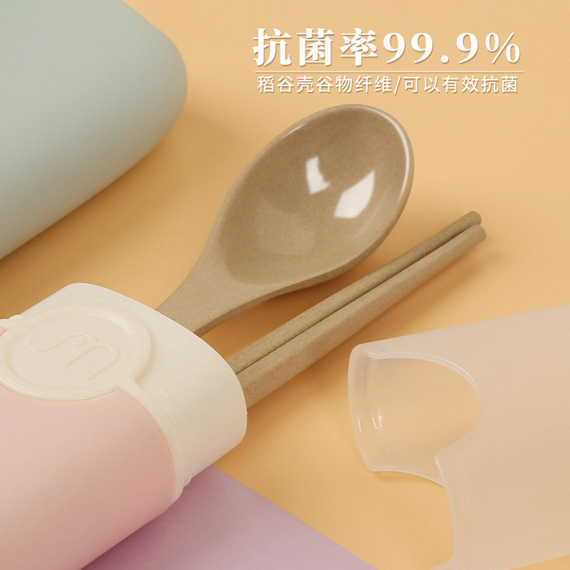 Portable chopstick spoon suit for work group Students Adult single portable Three sets of rice husk tableware containing box