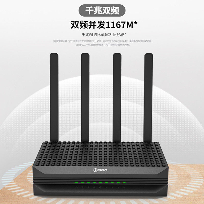 360 Home Firewall Router T5S Double one thousand trillion Wireless 1200M Home 2 4G 5G Dual-frequency fiber broadband WIFI signal amplifying relay wear wall routing