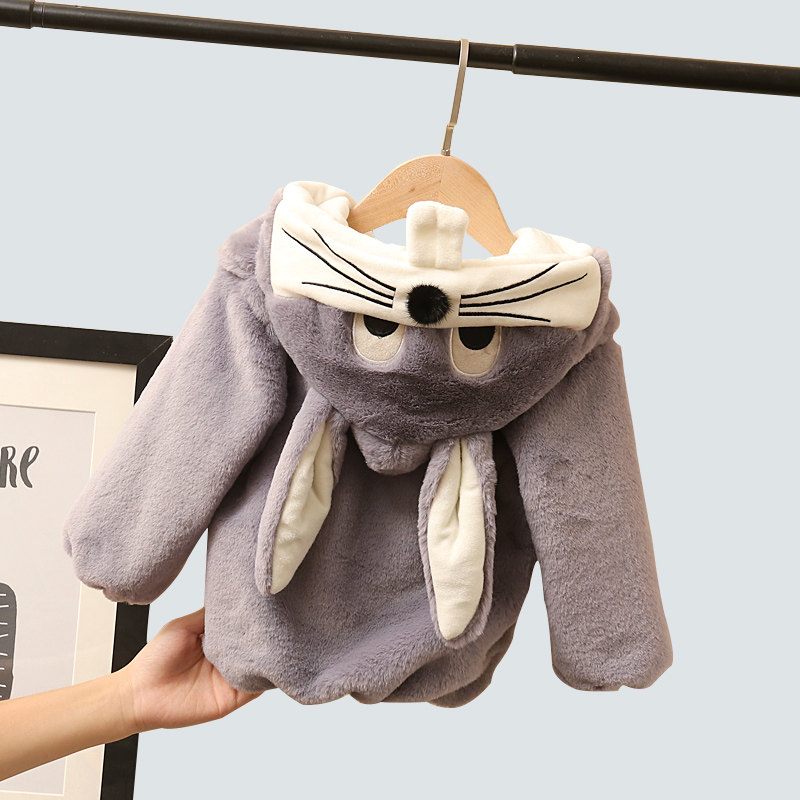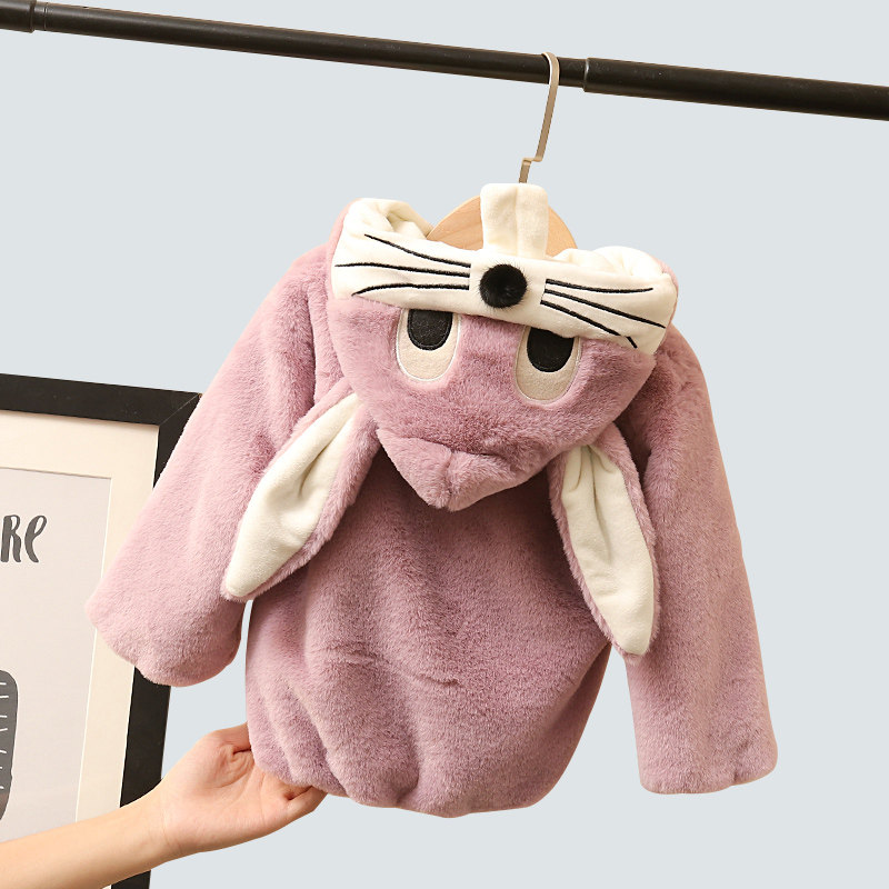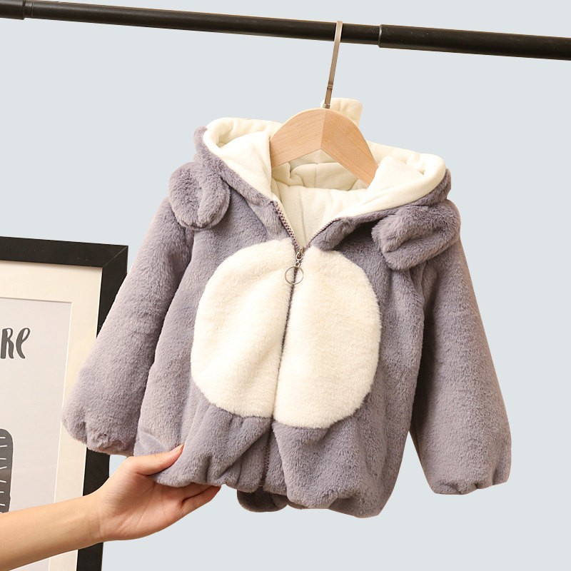Baby winter coat 2020 new girl's wool sweater foreign style cute children's cartoon fleece 1-3 years old 5 cotton coat