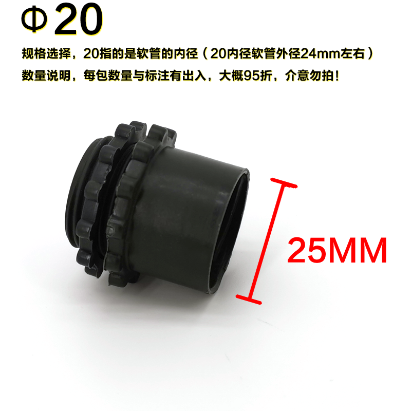 Plastic coated metal hose plastic joint Corrugated pipe Snake leather black nylon joint Lock nut Quick straight plug