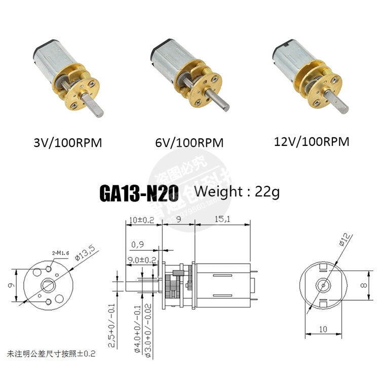 N20 DC reduction motor worm encoder DC gear reducer motor motor motor motor 3V6V12V 100RPM