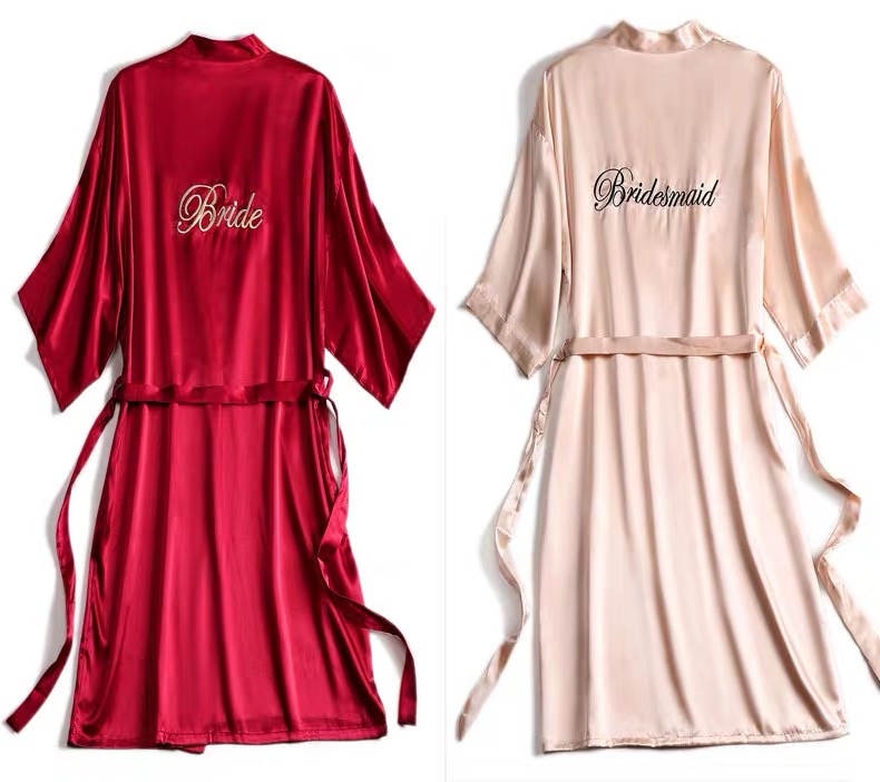 Bride Bridesmaid women's morning gown Wedding silk Birthday best friend party Pajama party embroidered red wedding makeup morning gown