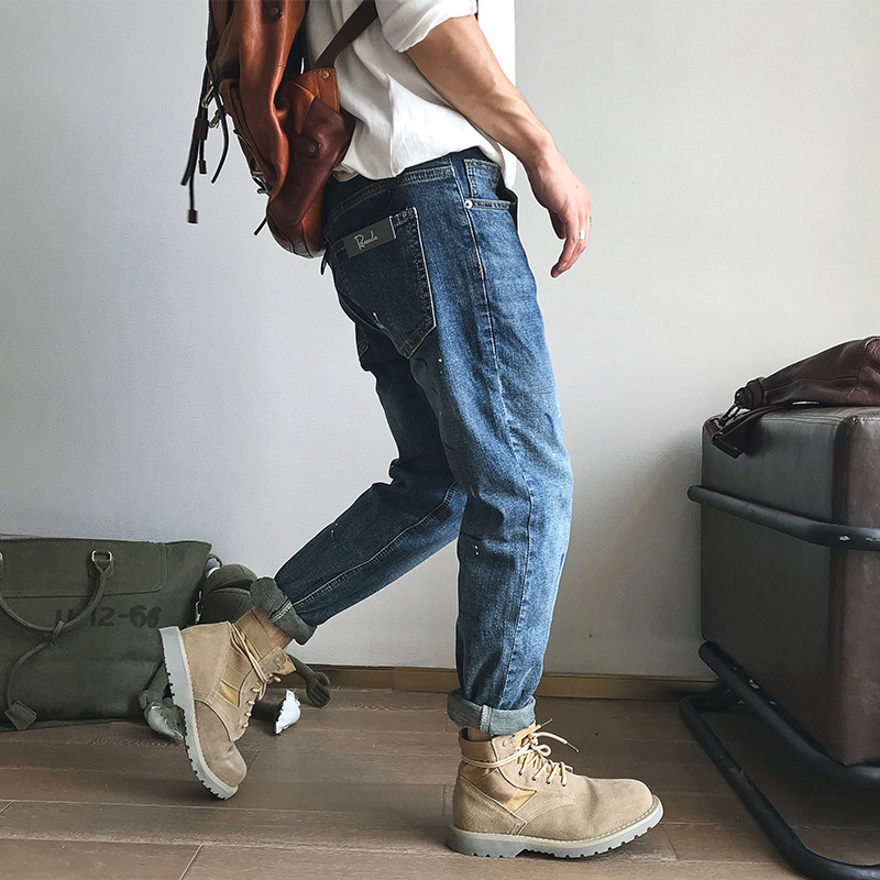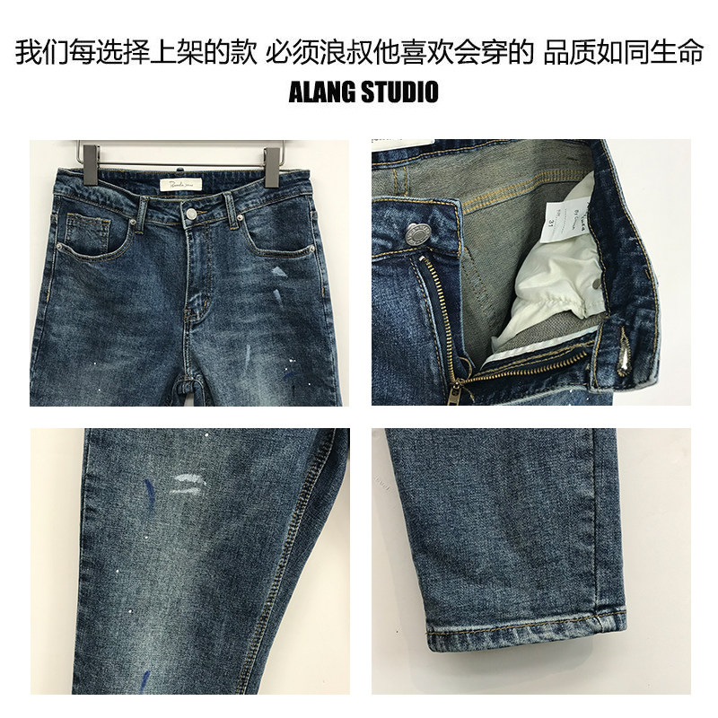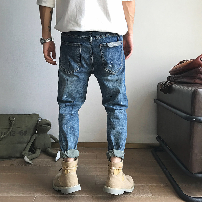 Xu Tailang 2021 Wave Uncles Original Men's Jeans Spring New brief Irregular Splash Lacquered 90% Pants