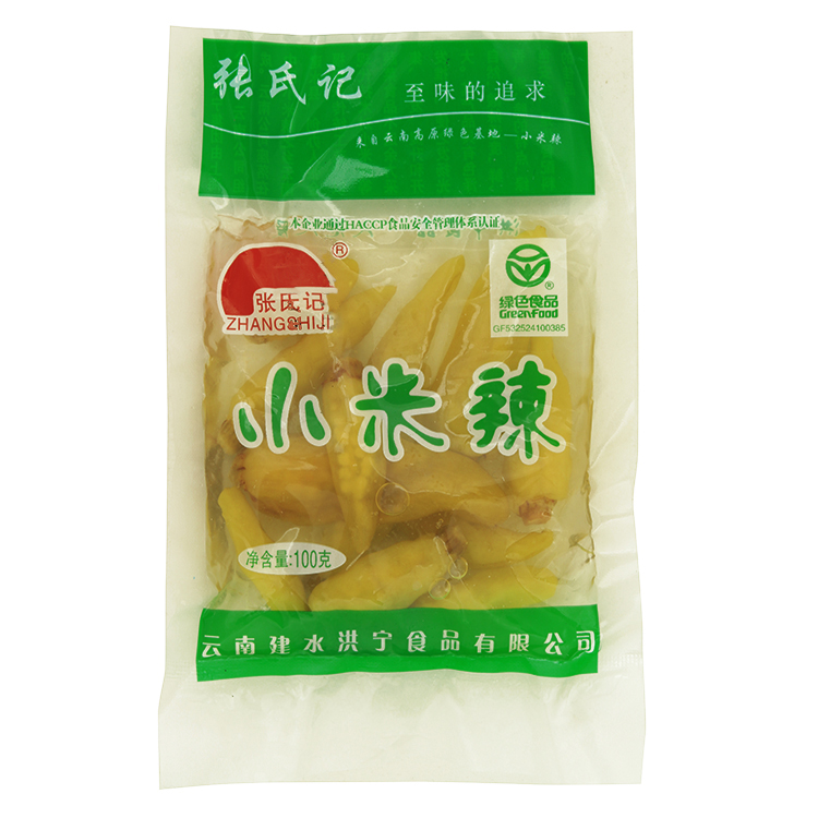 Zhang's Kee Millet Spicy 100g bag, millet pepper, pickled pepper, wild mountain pepper and chicken feet ingredients