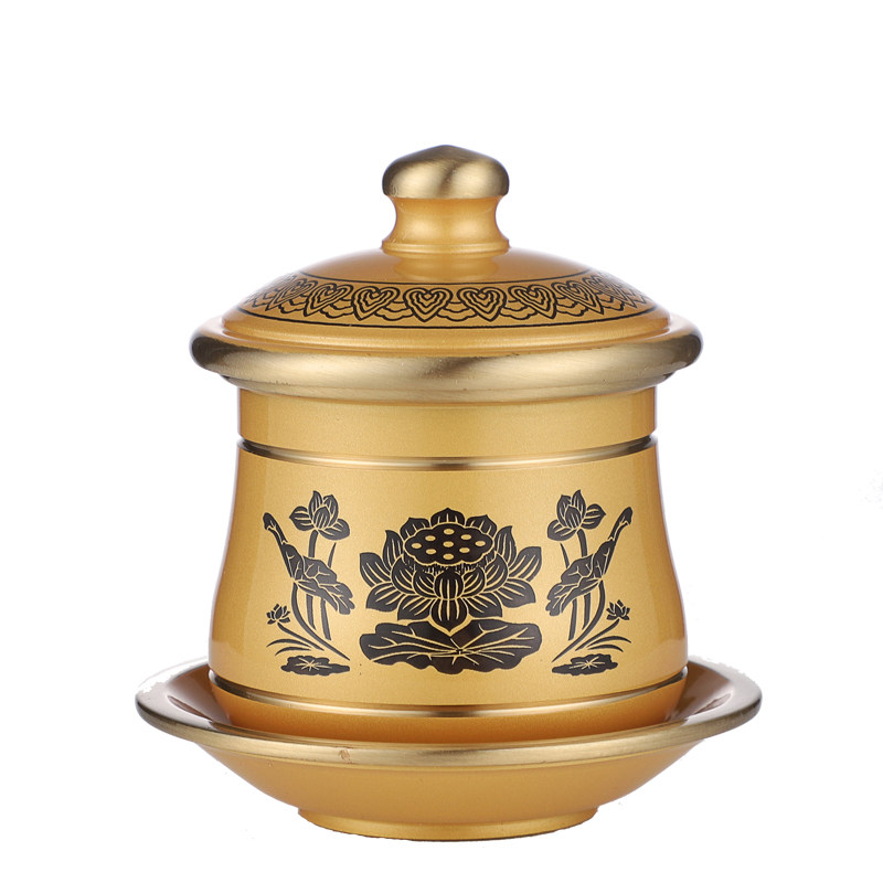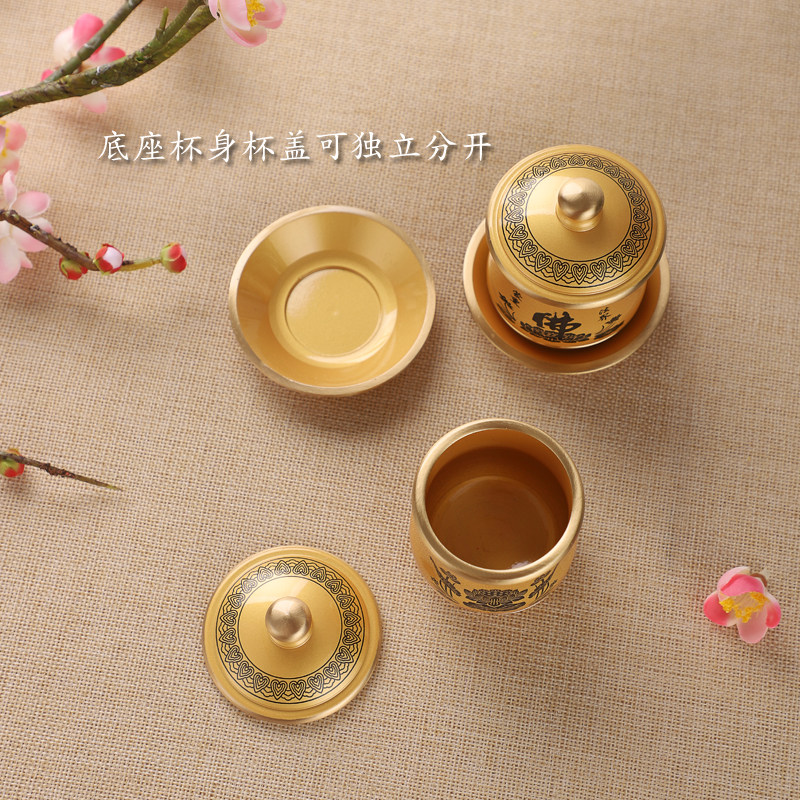 Tribute cup to the water glass for the Buddha's water glass front copper small number net water glass lotus Guanyin water glass Holy water glass pure copper home