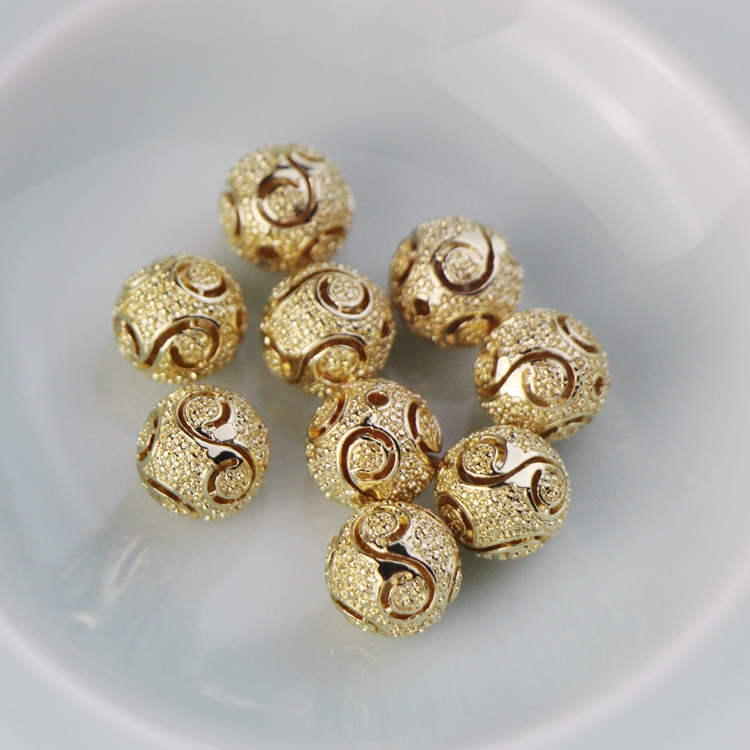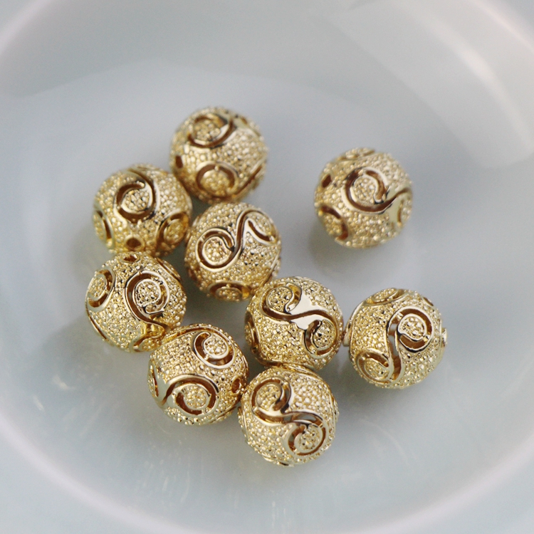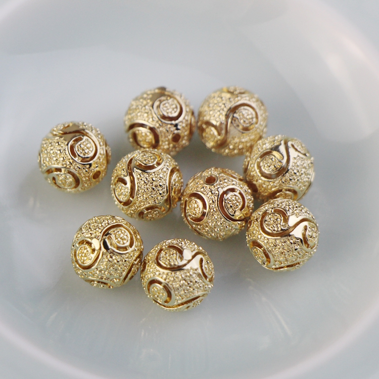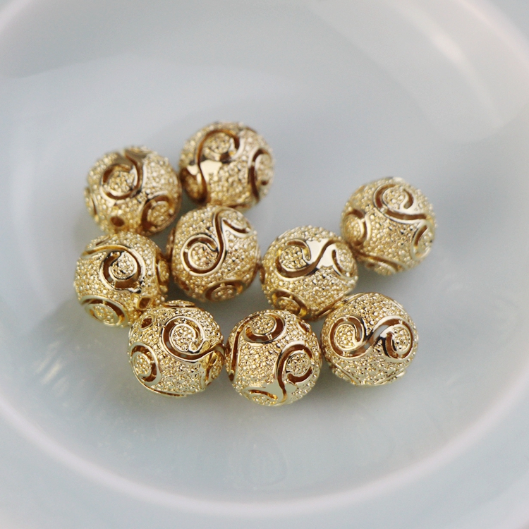 Copper plated 14K gold shelf hollow ball 11mm homemade diy hand - made bracelet chain accessories material