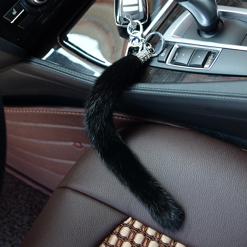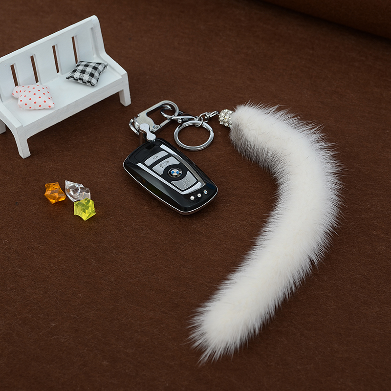 Car with key hanging decorated with water mink hair whole leather hand cut and fur integrated with no sweater, male and female cute