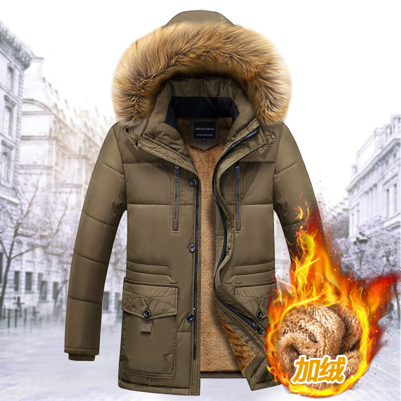 Dad's long winter coat Middle-aged and the elderly cotton coat down cotton suit Male grandfather's quilted jacket winter velvet thickened