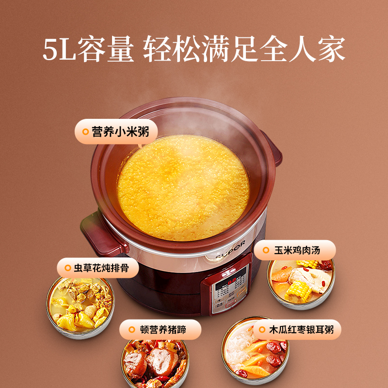 Supor electric stew pot Household purple ceramic soup casserole porridge artifact stew pot automatic intelligent 4-5L