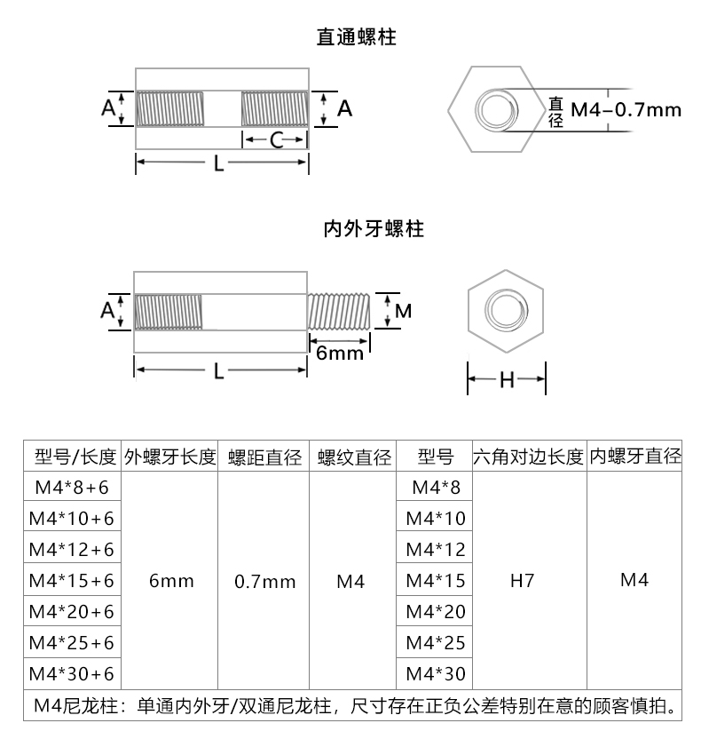 Hexagonal nylon column M4 straight through single-pass couplings post-pin isolation column plastic insulation support partition studs abrasion resistant