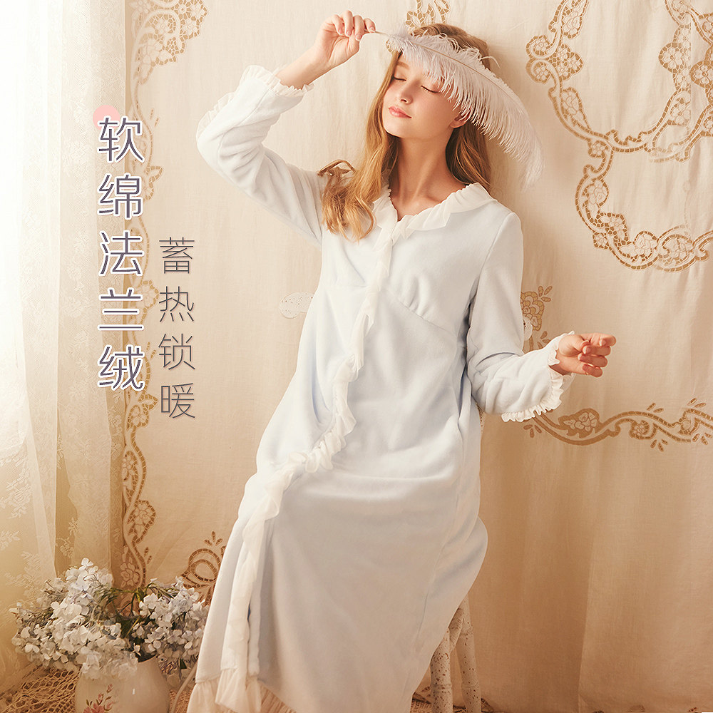 RoseTree Princess nightgown Women's autumn and winter thickened long version coral velvet bathrobe sweet flannel pajama night dress
