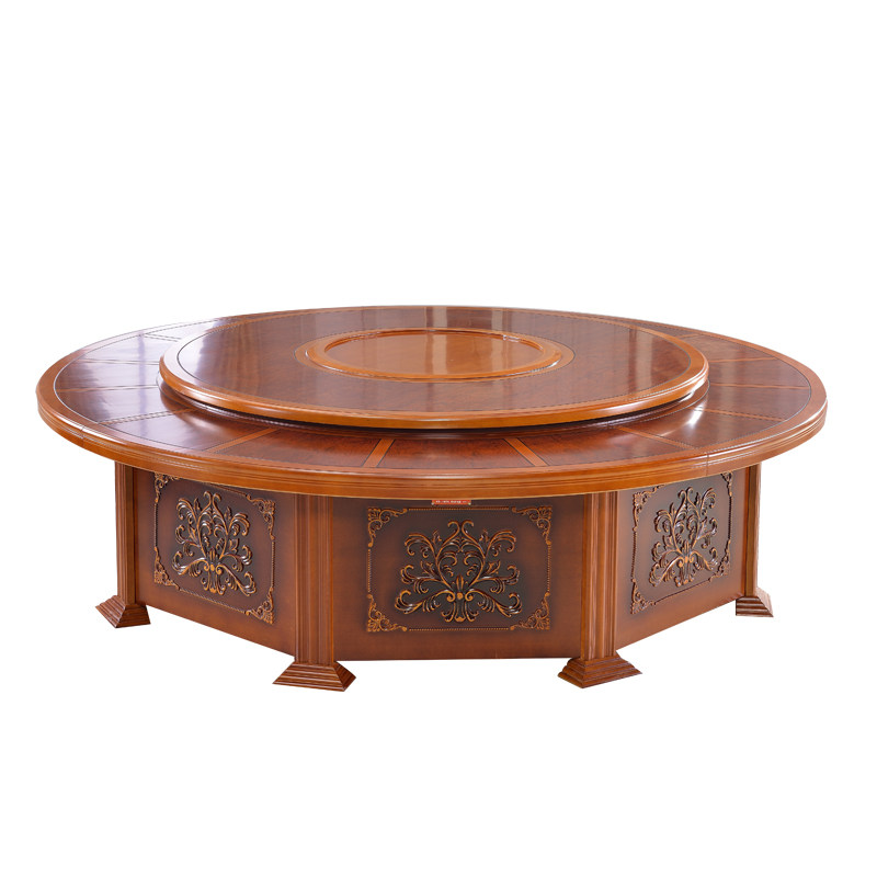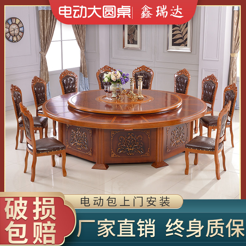 Hotel Electric Dining Table Large Round Table Hotel Bag Compartment Commercial 15 People 20 People Automatic Turntable Banquet Table And Chairs Combination