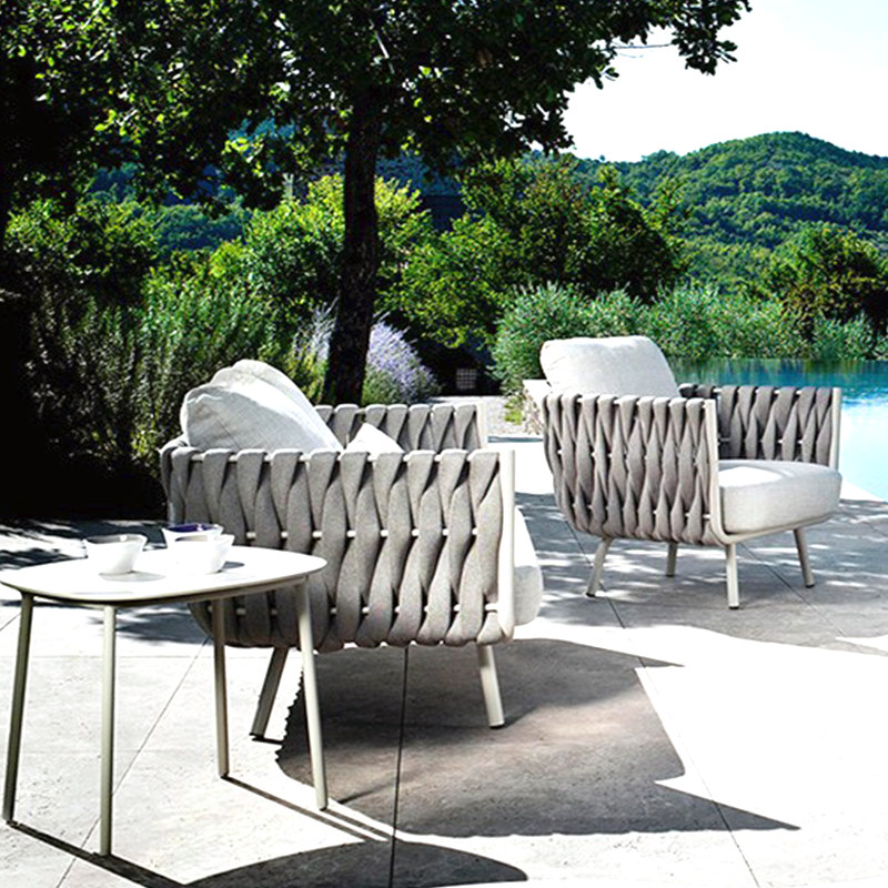 Outdoor terrace sofa balcony courtyard thick rope sofa coffee table combination hotel homestay coffee house Nordic sofa