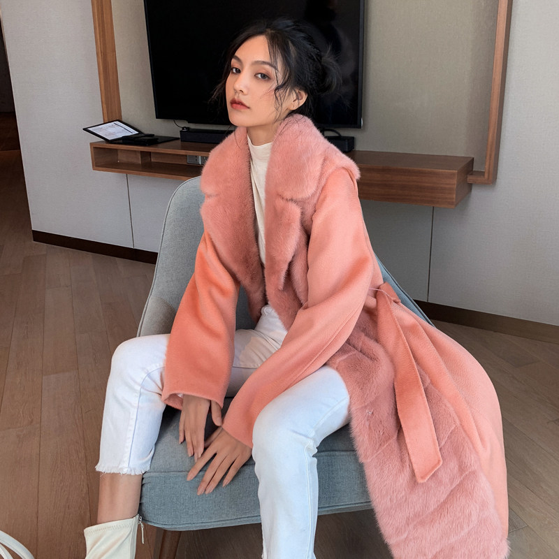 Flame Queen Two-Wear Imported Mink Vest Whole Mink Fur Coat Wool Double-sided Wool Mid-length Fur Coat Women