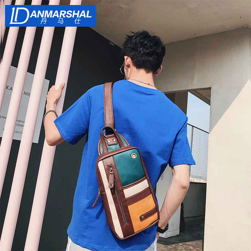Danmas color contrast sports and leisure chest bag fashion street Messenger bag large capacity trendy bag shoulder bag trendy men's bag