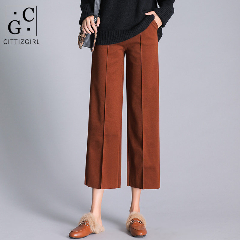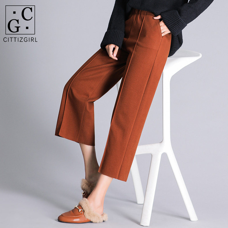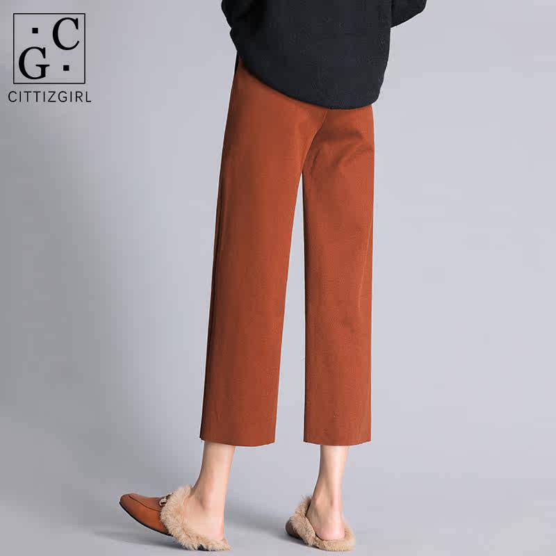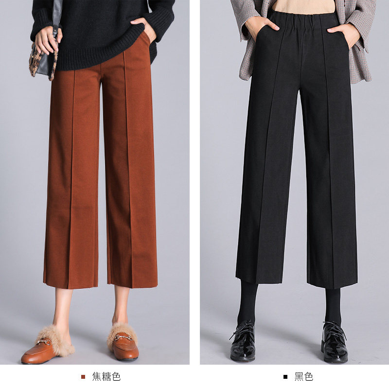 CG wide leg pants caramel color autumn and winter wool pants thickened high waist straight tube hanging 2020 autumn and winter loose 8459