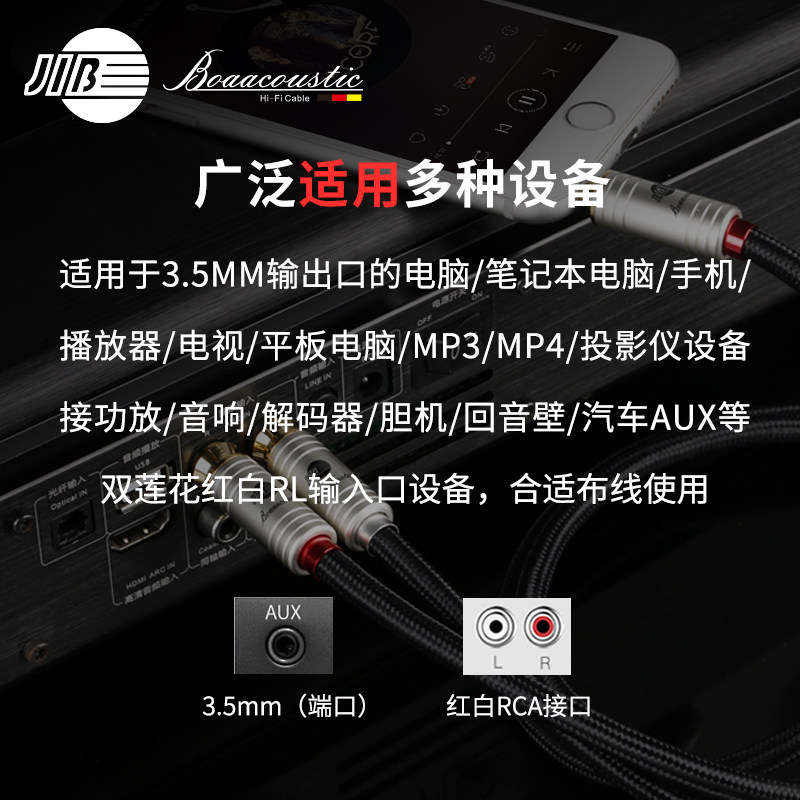 JIB German Python 3.5mm to double lotus head one minute two audio line mobile phone computer speaker power amplifier universal